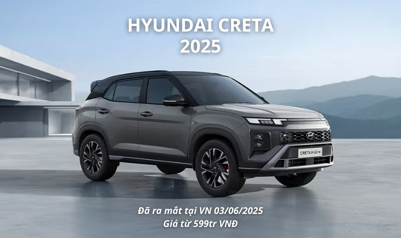 Hyundai Creta 2025 đã chính thức ra mắt thị trường Việt Nam vào ngày 03/06/2025. Hiện tại, các đại lý đã bắt đầu nhận đặt cọc và triển khai các chương trình ưu đãi hấp dẫn cho mẫu xe này. Creta 2025 tiếp tục được lắp ráp tại nhà máy của Hyundai ở Ninh Bình, đảm bảo nguồn cung dồi dào.