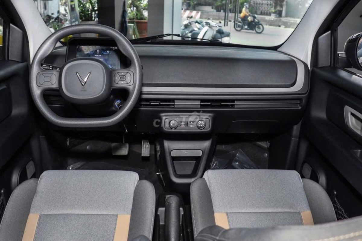 Trong phân khúc xe điện mini, nội thất xe Vinfast Minio Green không theo đuổi sự xa hoa với các chất liệu như da Nappa hay ốp gỗ. Thay vào đó, VinFast tập trung vào sự tinh gọn để giảm trọng lượng xe và tối ưu chi phí sản xuất. Toàn bộ bảng táp-lô được thiết kế phẳng, giúp mở rộng tầm nhìn phía trước, một yếu tố cực kỳ quan trọng giúp người mới lái dễ dàng căn chỉnh xe khi đi vào đường hẹp.