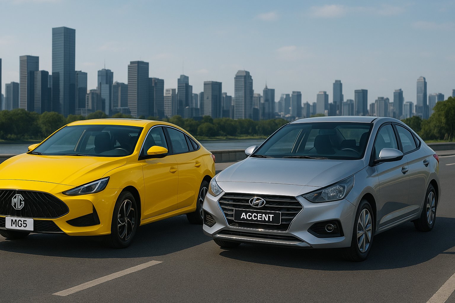 MG5 đến từ thương hiệu MG (Anh Quốc, hiện thuộc sở hữu của SAIC – Trung Quốc) đang là lựa chọn gây chú ý nhờ thiết kế thể thao, trang bị phong phú và giá bán dễ tiếp cận. Trong khi đó, Hyundai Accent – mẫu xe quen thuộc đến từ Hàn Quốc – vẫn giữ vị thế vững chắc nhờ sự thực dụng, tin cậy và thương hiệu mạnh.